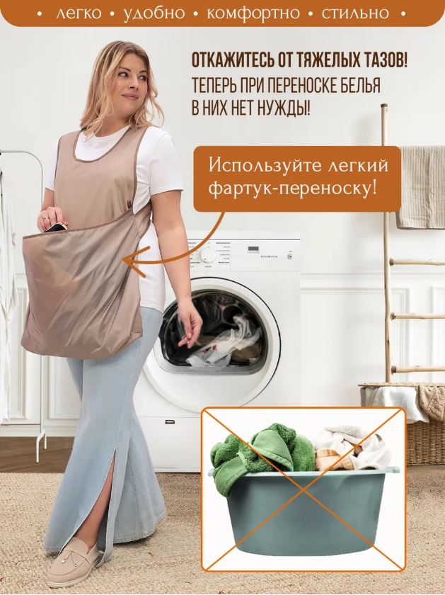 Фартук переноска для белья сделает стирку легче и быстрее, и станет незаменимым помощником по хозяйству для каждой хозяйки!