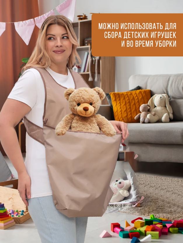 Фартук многофункционален: еще его можно использовать для сбора урожая на даче или наведения порядка в доме.